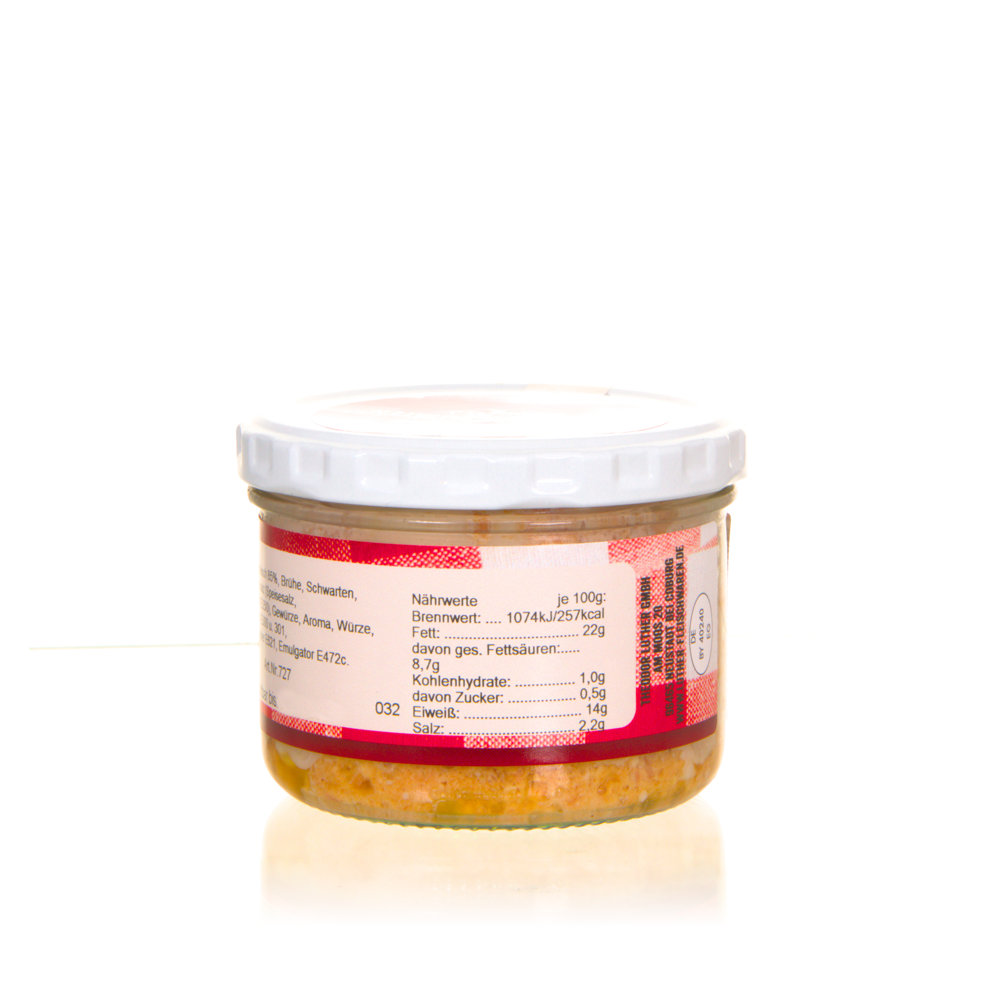 Deftige fränkische Wurstspezialität im Glas. Das fränkische Bauernfrühstück der Fleischerei Luther wird ist besonders streichzart und überzeugt durch den kräftigen Geschmack.