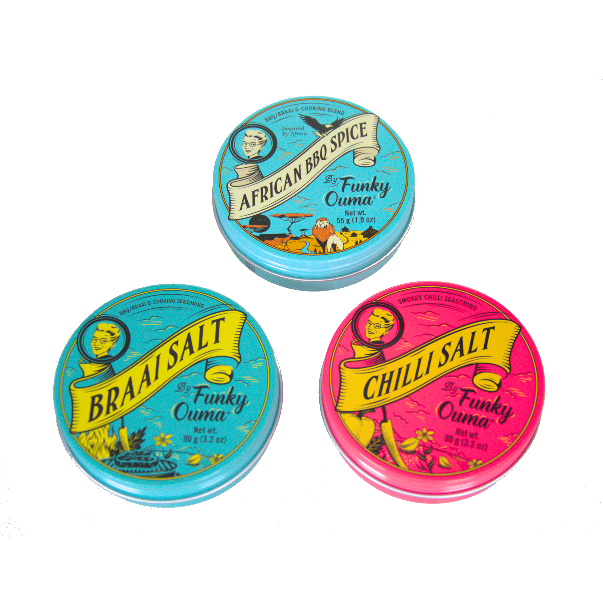 Funky Ouma Geschenkset afrikanische Gewürzmischungen - Braai Salt, Chilli Salt, African BBQ Spice