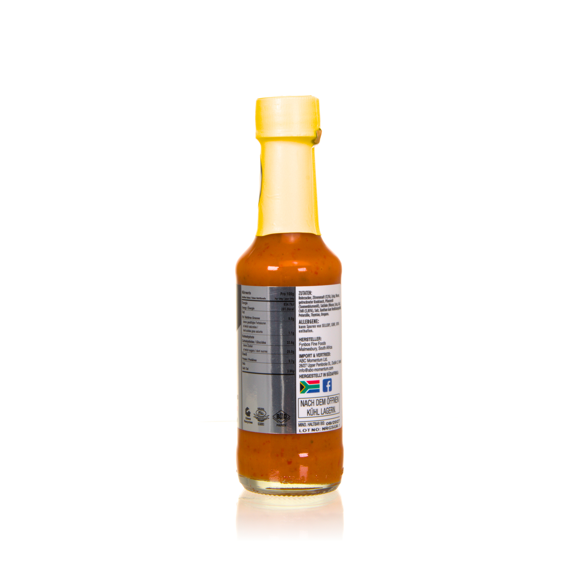 Fynbos Fine Foods Lemon & Chili Sauce ist eine erfrischend aromatische Würzsauce aus Südafrika, die die lebendige Säure sonnenverwöhnter Zitronen mit der Schärfe ausgewählter Chilis verbindet. Das Zusammenspiel aus fruchtiger Frische und leichter Schärfe sorgt für ein ausgewogenes Geschmackserlebnis. Ideal zu Fisch, Meeresfrüchten, Geflügel oder als würzige Ergänzung zu Grillgerichten und Salaten. Eine vielseitige Sauce mit südafrikanischem Charakter und dem Frischekick von Zitrusfrüchten.