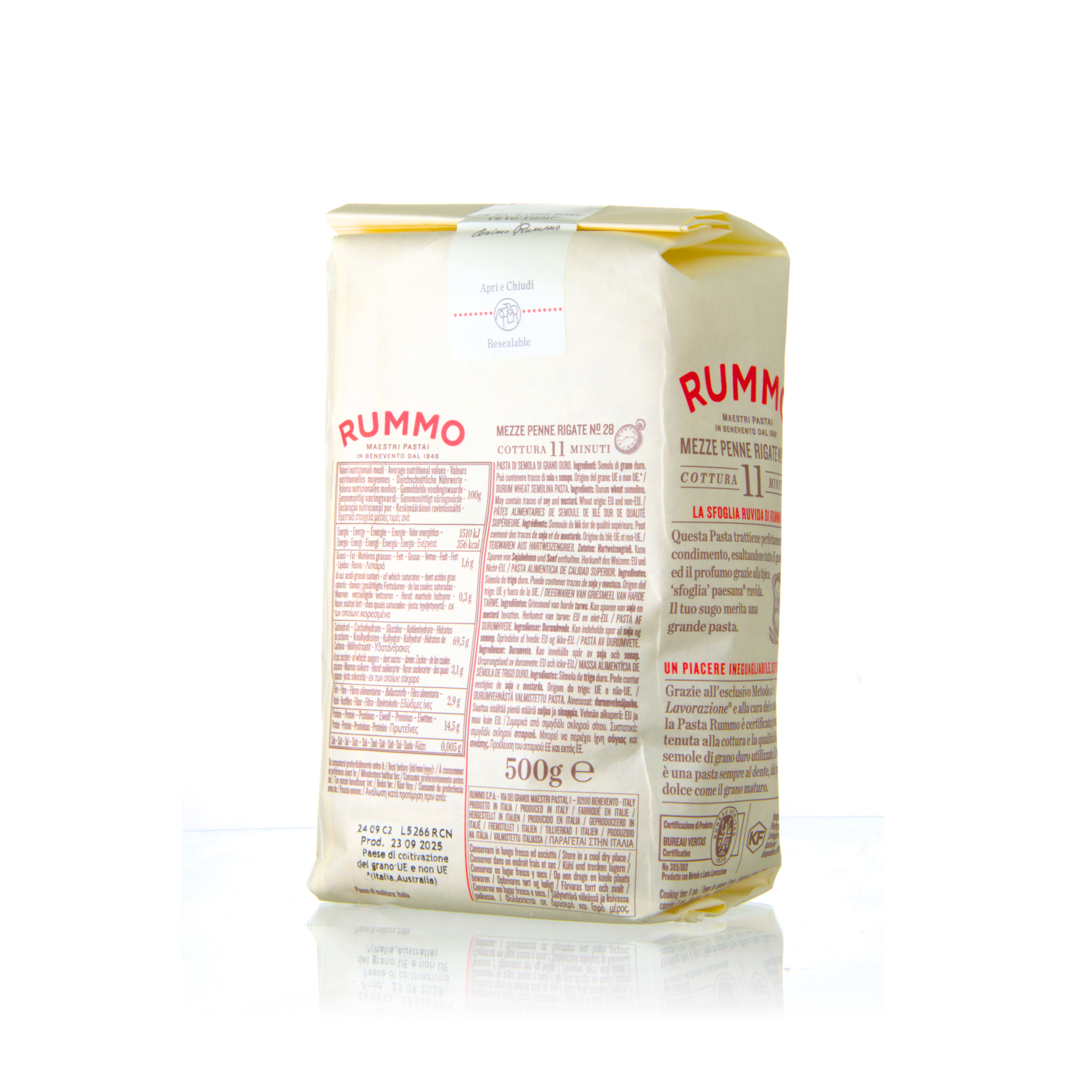 Produktinformationen "Rummo Mezze Penne Rigate No. 28 - Pasta aus Hartweizengrieß"